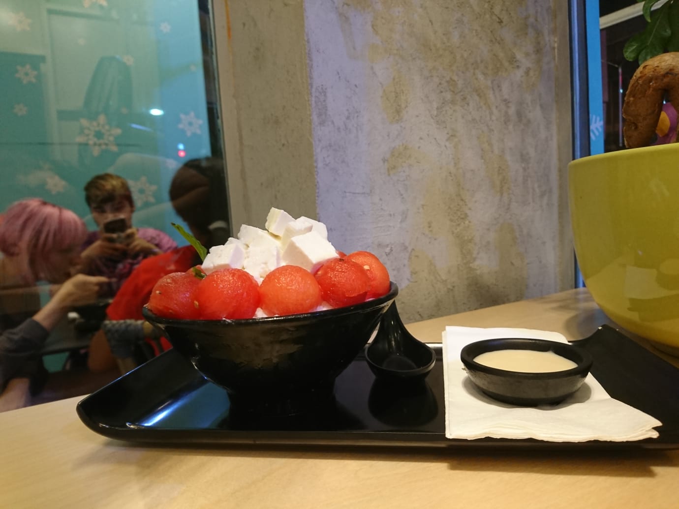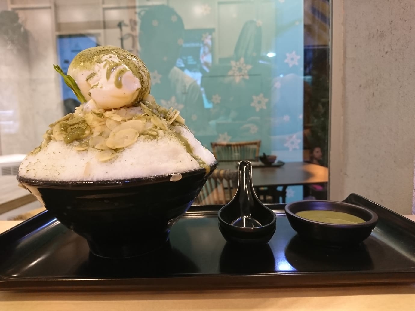 המבחר טוב: מטריפל שוקולד עם חתיכות בראוניז, דרך מנות שהיו כמו אבטיח וגבינה מלוחה, גלידת מנכו וחתיכות הפרי או מלון בהתאמה ועד תה ירוק עם שקדים פרוסים. לקחנו את התה. בעת הנגיסה, זיכרונות מתחילים לצוף. אני, אפילו קניתי מכונת קאגיגורי עם מתאם מתאים. להגיד שאני מכור לדבר, זו המעטה. המנה מצוינת, למרות שהקרח לא בטעמים כמו ברשתות אחרות. הטעמים נהדרים וכדור גלידת הוניל עם השקדים עושים תוספת מתבקשת למנה. היה יכול להיות מעניין אם הייתה מנת שעועית מתוקה או כדורי טפיוקה. מערכת לתוך הלילה נותנת ארבעה כוכבים מתוך חמישה לבינג סו
